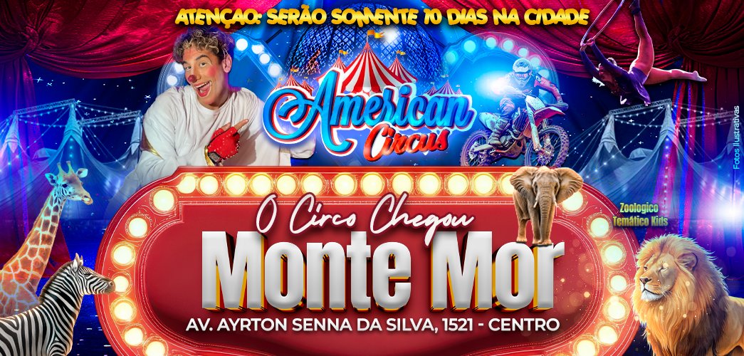 | Ingresso American Circus | Monte Mor – SP | 16/11/2025 – Domingo 1ª Sessão | R$ 11,00 – R$ 44,00Price range: R$ 11,00 through R$ 44,00 → Incluso taxa de compra online |